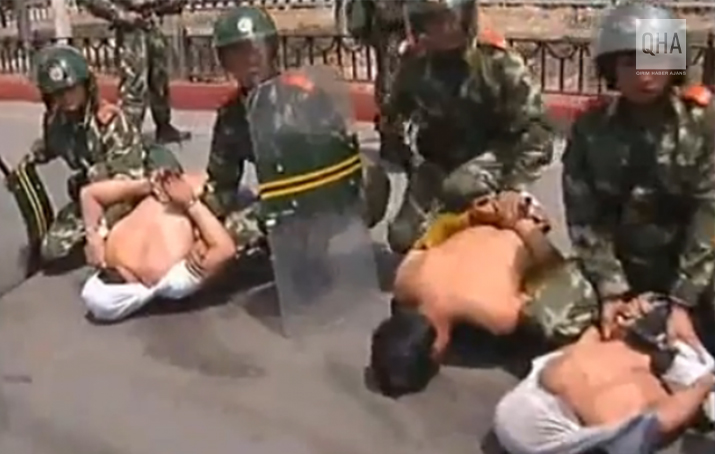 Ancak barışçıl eylemleri ‘otoriteye başkaldırı’ ve ‘isyan’ olarak değerlendiren Çin Komünist Partisi (ÇKP) hükumeti gösterilere çok sert yöntemlerle müdahale etti. Barışçıl protestoya önce sivil kıyafetli Çinli polis ve askerler saldırdı. Daha sonra protesto etnik çatışmaya dönüştü. Çin silahlı güçlerini arkasına alan, birçoğu paramilislerden oluşan Çinliler çok sayıda Uygur genci öldürdü.
