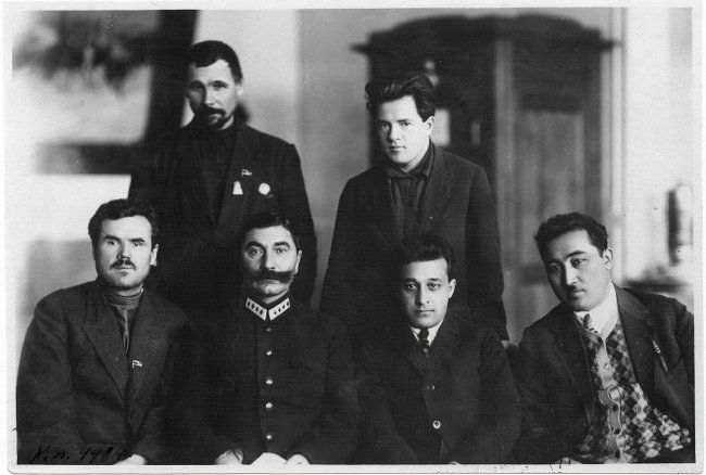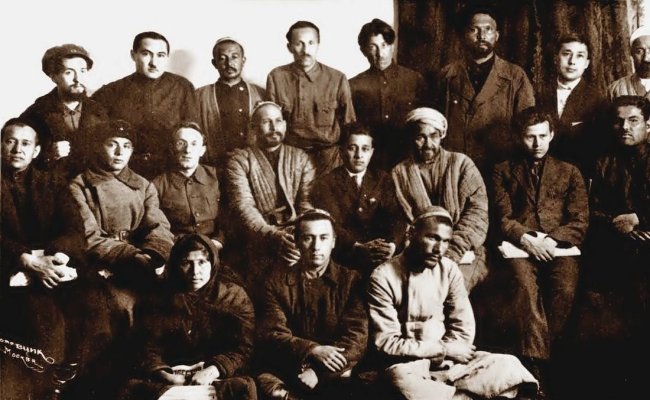 Fayzulla Hocayev (ön sıra, sağdan ikinci) Moskova'daki bir Komünist Parti toplantısında. 1928