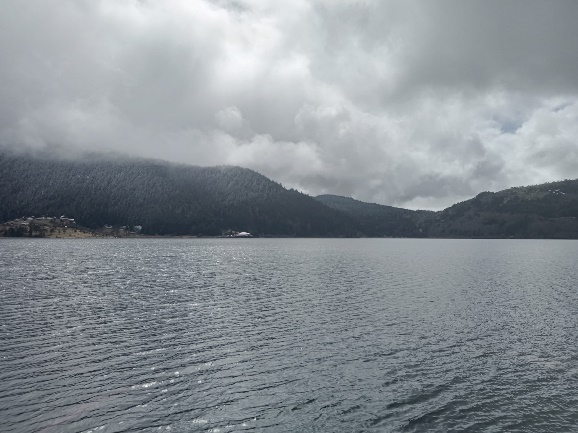 Abant Gölü etrafındaki dağların eteklerinde kar görüyorum örneğin, tüm kış boyunca Bursa ilinde görmediğimiz bir görüntü bu, hoşuma gidiyor. Bursa’da Ulu Dağ’a çıktığımızda karı görebiliyoruz ve dokunabiliyoruz ama bu sıklıkla yapabildiğimiz bir durum değildir. Rehberimiz anlatıyor Abant Gölü’nün nasıl oluştuğunu, ben de anlatılanları unutmamak için can kulağıyla dinliyor, bilincimi zorluyorum. Abant Gölü yer altında oluşan tektonik çöküntüler sonucu büyük blokların vadiyi doldurmasıyla oluşmuş. Bolu’nun 30 km güneybatısında kalan gölü kar suları ve iki küçük dere beslemekteymiş.