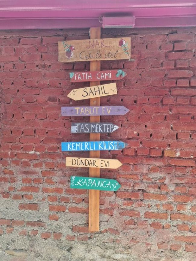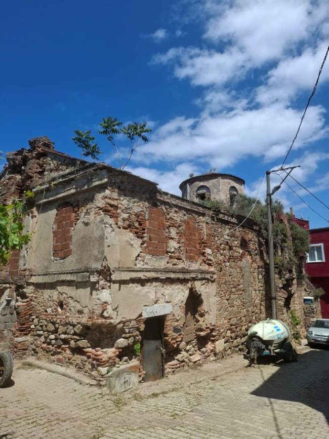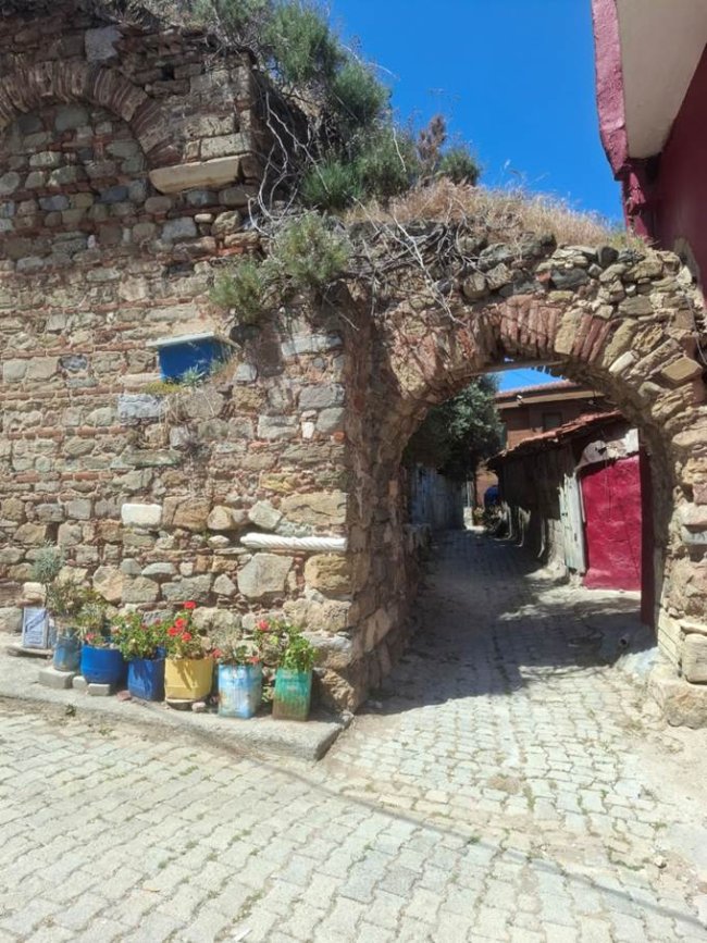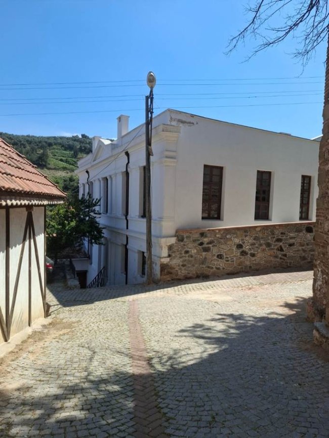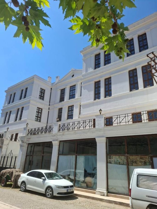 Taş Mektep: 1909 yılında yükselen bu yapı, taş bloklardan örülmüş duvarları ve geniş sınıf alanlarıyla bir kimlik inşası mekânıdır. Osmanlı’nın son döneminden Cumhuriyet’in ilk yıllarına uzanan süreçte Taş Mektep, bir neslin şekillendiği kutsal bir alan olmuştur. Neo-klasik mimarisiyle dikkat çeker. Zamanında bölgenin en büyük Rum okuluymuş. Çocuk seslerinin yankılandığı sınıflar artık sessiz olsa da, bu yapı hâlâ öğrenmenin izlerini taşımaktadır. Şu an dıştan görülebilir, içeri giriş genelde kapalı ama çevresinde yürüyüş etkileyicidir.