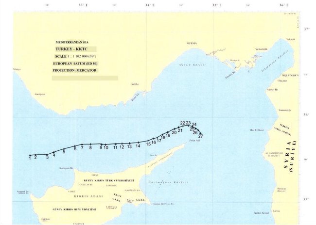 [7] Örneğin 27 Nisan 2012’de Türkiye Cumhuriyeti Resmi Gazetesinde yayımlanan (28276), 2012/2802, 2012/2973 ve 2012/2968 kararları ile Türk Bakanlar Konseyi TPAO’ya Doğu Akdeniz’de keşif yetkisi vermiştir. Söz konusu kararlara (2012/2802,2012/2973,2012/2968) GKRY tarafından protesto edilmiştir. Nitekim GKRY ilan ettiği MEB sahası ile çakışmakta olduğu GKRY tarafından 15 Haziran 2012 mektubu ile BMGS’ne iletimiştir ( A/66/851).