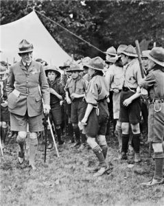 Eski İngiliz askeri Robert Stephenson Smith, Güney Afrika’da bir kuşatma esnasında savunmasını yerel gençleri irtibat-takviye elemanı olarak kullanma ve başarıları nedeniyle ile generalliğe terfi ettirilmiştir. Smith, Baden Powell (B.P.) mahlas ismiyle tecrübelerini anlattığı bir kitap yayımlamıştır. Doğada hayatını idame ettirme prensiplerini 1900’lü yıllardan itibaren kurumsal ve uluslar arası bir hale dönüştürmeyi başarmıştır. Gençlerin doğada hayatta kalma/idame ve karakter özelliklerini geliştirmesi fikri buradan doğmuştur. Kampçılık, izcilik hayatının beka ve idame prensiplerinin temel eğitimi olarak en önde gelmektedir.