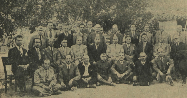 Fotoğraf: Manisa Barosu’nun, Haziran 1935 yılında Şemi Bey’in bağında yaptıkları kır ziyafetini göstermektedir. Fotoğrafta dönemin Manisa Devlet Erkânı ve avukatları görülmektedir. (25 Haziran 1935 Akşam Gazetesi)