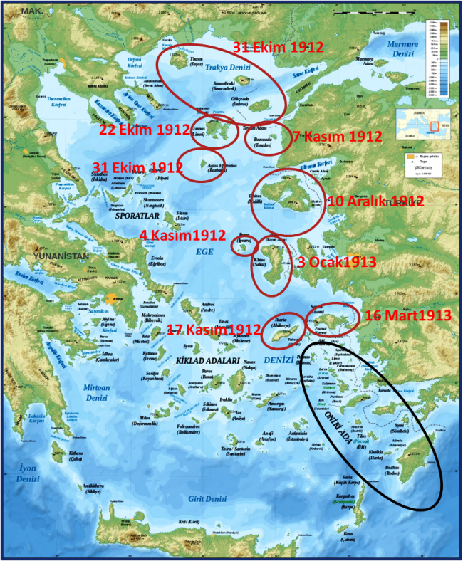 Harita: (E) Amiral Turgay ERDAĞ; “Ege Adaları Nasıl Yitirildi?”, Çanakkale Demokrat Gazetesi, 15.10.2019.