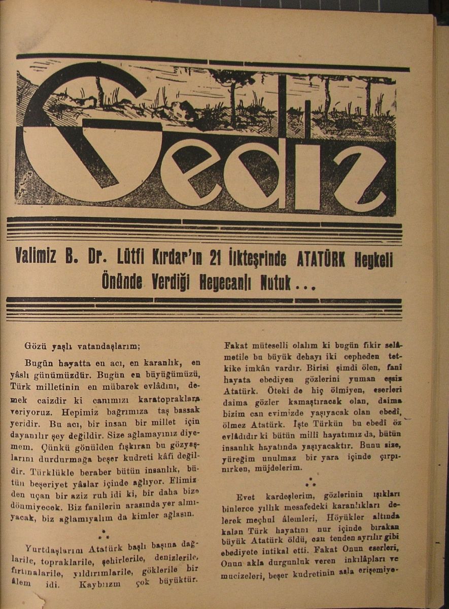 [1] Nejdet Bilgi, Yeni Doğuş: Manisa Halkevi Dergisi, Atatürk Araştırma Merkezi Dergisi Cilt: 17, Mart 2001, Sayı:49'dan ayrı basım