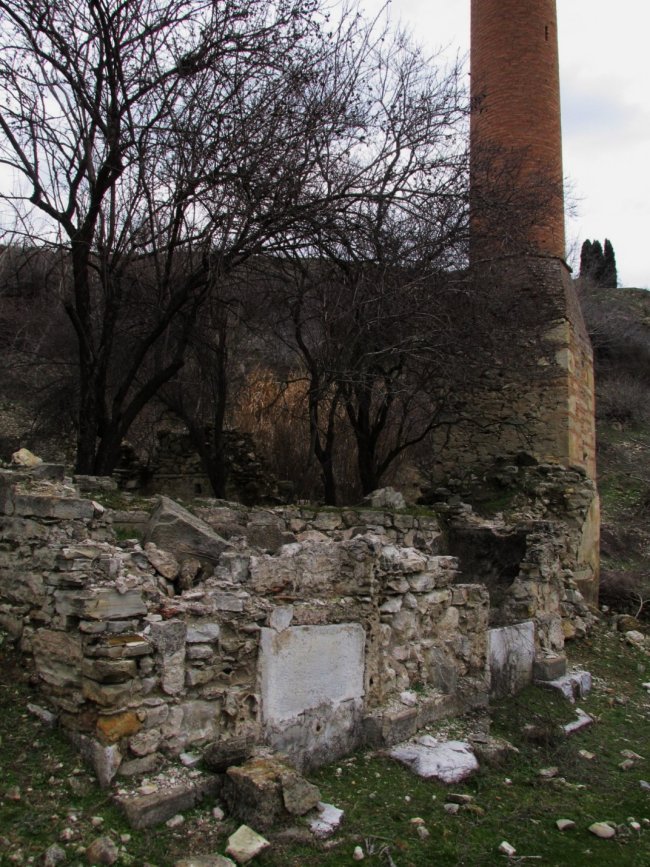 Yıkık Gazanfer Ağa Camisi Minaresinin 2004 Yılında güneyinden görünümü. Ve aynı minaresinin kuzey batı bitişiğinde camiye ait temel duvarların 21.01.2018 Günü görünümü.