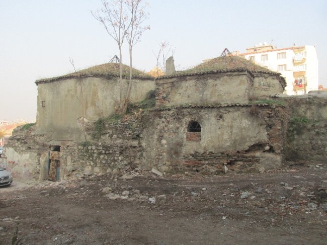 Özel (hisseli) mülkiyette Hamza Bey (Alaca) Hamamının Belediyece arındırılan batı yönü.