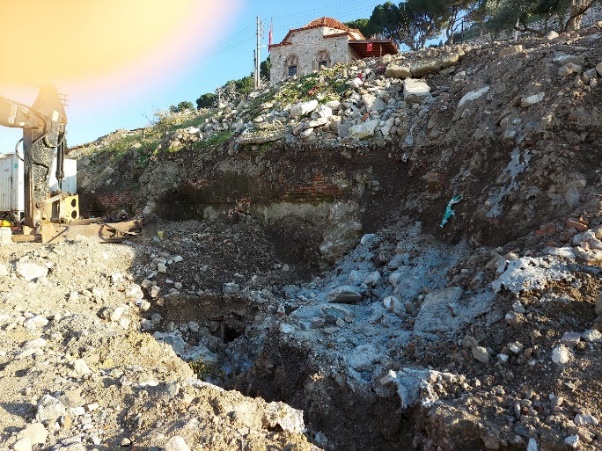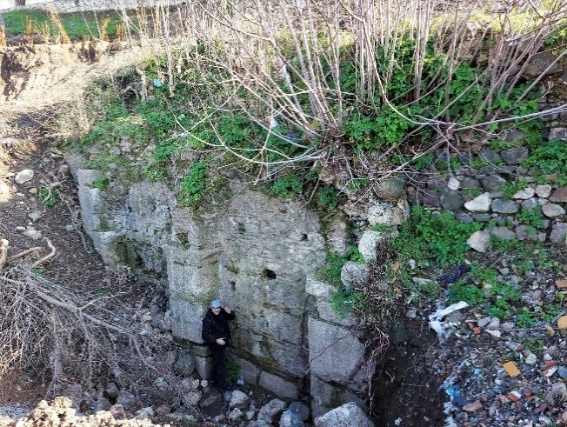 Daha önce kayda dayanarak “İshak Çelebi Mescidi” diye yazdığım bu kalıntı da aynı alandadır. İlk fotoğraf 2014, diğeri ise 14.02.2023 günü alınmıştır.