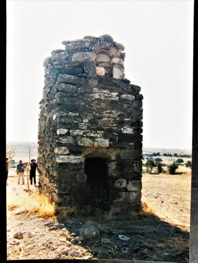 Şeyh Nurullah Efendi Köyü Camisi Minaresi Tabanının 18.07.2004 Günü kuzeyinden görünümü. Bu bir ölçü kabul edilirse ki öyledir. Burada, cami, zaviye, Misafir Konağı (Karbansaray), kuyu ve benzeri yapılardan oluşan bir külliyenin var olduğu düşünülebilir.