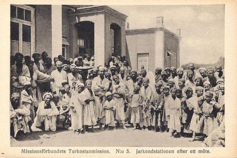Svenska Missionsforbundet, bu ülkede bir Misyon kuran ilk topluluktu. 1891 kışında Bay N. F. Höijer ve Türkiye'den Müslümanlığa geçmiş Johannes Aveteranjans, Kaşgar'a geldi. Birkaç gün sonra Bay Höijer, Aveteranjans’ı ailesiyle baş başa bırakarak geri döndü. Bayan Nystrom ve bir İranlı olan Dr. Mirza Josef Mesrur, Temmuz 1894'te geldi. 1896 yazında Bay Raquette, karısı ve Bay Backlund ile birlikte aynı topluluk tarafından gönderilen sahaya geldi. Şu anda iki istasyonda Müslümanlar arasında çalışan dört erkek ve yedi kadın var, biri eski Kaşgar'da, biri Yarkend'de; ve üç erkek ve üç kadın Çinliler için çalışan iki istasyonda, biri eski ve diğeri yeni Kaşgar'da. Bu sonbaharda oraya gitmeye hazır üç yeni misyoner var ve birkaç aday bu alanda Müslüman çalışmalarına hazırlanmak için eğitim alıyor. Çinlilere Misyon, İncil'i vaaz etme, okullar inşa etme ve bakımını yapma ve İncil ve risaleler dağıtma konusunda çalıştı, ancak aşağıda size Müslümanlara Misyon'un çalışmalarını anlatmak istiyorum.