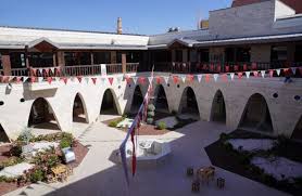 Burası Ahi Evran türbesi, camisinin ve meydanının hemen yanında yer alan iki katlı, kare şeklinde, ortasında bir süs havuzu da olan geniş avlulu kesme taş bir yapı. Belediye buraları meslek gruplarına göre üretim ve satış amaçlı meslek erbabına tahsis etmiş. Yorgunluğumu çay ve kahve ile biraz gideriyorum. Yan taraftaki Ceza İnfaz Kurumuna ait iş yurtlarında üretilmiş ahşap, seramik, gümüş hediyeliklerden bir şeyler alıyorum. Ertesi günü buraya gelmek tekrar nasip oldu. Aynı yerde dinlenirken, eşimin eski bir öğrencisi öğretmen Yusuf bey de bizi buluyor. Hoş sohbet esnasında, buranın tarihi bir yapı olmadığımı, 10 yıl kadar önce buradaki boş kamu arsasına tarihi eser şeklinde projelendirilmiş, yen, bir taş yapı eser olduğunu öğreniyoruz. Sevindim. Bir de birinin başlattığını diğeri gelince sahiplenmezlik yapmasa, daha hızla gelişeceğiz diye düşünüyorum. Bu arada, öğretmen arkadaşın düzgün gitmeyen tip1 şeker hastası olmasına, dahası bunun bütün kardeşlerinde de görülmesine, yani ailevi oluşuna da üzüldüm. Hekimce birkaç önerim oldu. Şifalar diledim.