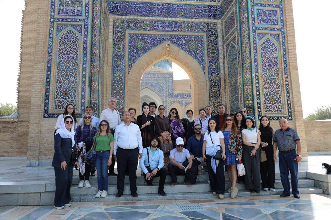 Timur yerleşkesinde önce sol tarafa yöneliyoruz. Orada orta yükseklikte bir türbe var. Burası Timur’un hocalarının kabirleri imiş. Önceden şu saatte şurada olacağız diye sıkı tembihte bulunulduğu için buraya ayrılan süre toplam 30 dakika. Dolayısıyla gruptan kopmamak adına her yeri şöyle bir göz ucuyla görüp, hızlı adımlarla diğer bir alana yürüyoruz. Sonra ulaştığımız Timur’un kabrine iki yüksek klasik çinilerle bezeli taç kapılarda giriliyor. İlk taç kapıdan sonra giriş için bilet satış yerinde uzun kuyruk var. Bilet alsak mı, zaman çok dar ikilemi içinde bocalıyoruz. Bir kısmımız resim çekmek, çektirmek ile meşgul. Bilet alamıyor, ikinci taç kapıdan, geniş avluyu ve karşıdaki mezar alanını selamlıyor, duamızı okuyor ve yürüyerek otobüslerin yanına yürüyoruz. Bu arada akademisyen bir grup, biletsiz avluya kısa süreli girip çıkalım, biz binlerce km.den geldik, vaktimiz de çok az demelerine rağmen, müsamaha göstermeyen “ve “çıkın çıkın” diye seslenen bilet denetim görevlisine, özellikle Azerbaycanlı bir grup arkadaş, bu davranışından dolayı tepki gösteriyorlar. Haklıydılar. Ama ikinci taç kapının önünden resim çekiyor, ön kapının önünde de grup resmi çekiliyor, söylenen yere doğru grup halinde yürüyoruz. Birkaç arkadaş, buraya kadar gelinir de Buhara görülmez mi deyip, tren için gruptan ayrılıyorlar. Böyle kalabalık gruplarda grupları bir arada tutmak da mesele. Konu konuyu açıyor. Bir arkadaşımız, eski ortak dost Mahmut beyin, “Laiklik asıl dindarlara lazım” dediğini hatırlıyor. Ona da selam olsun. Hasta olduğunu biliyoruz. Buradan dualarımız onun için de.